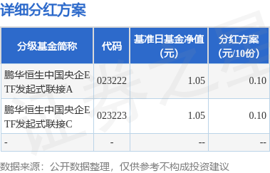 本站消息,7月8日发布《鹏华基金管理有限公司关于鹏华恒生中国央企交易型开放式指数证券投资基金发起式联接基金2025年第1次分红公告》。本次分红为2025年第1次分红。公告显示,本次分红的收益分配基准日为6月6日,详细分红方案如下: